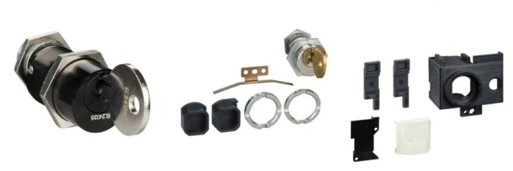 одинаковыми замками и одним ключом: 3 замка 2 ключа (ранее Schneider Electric 64930).