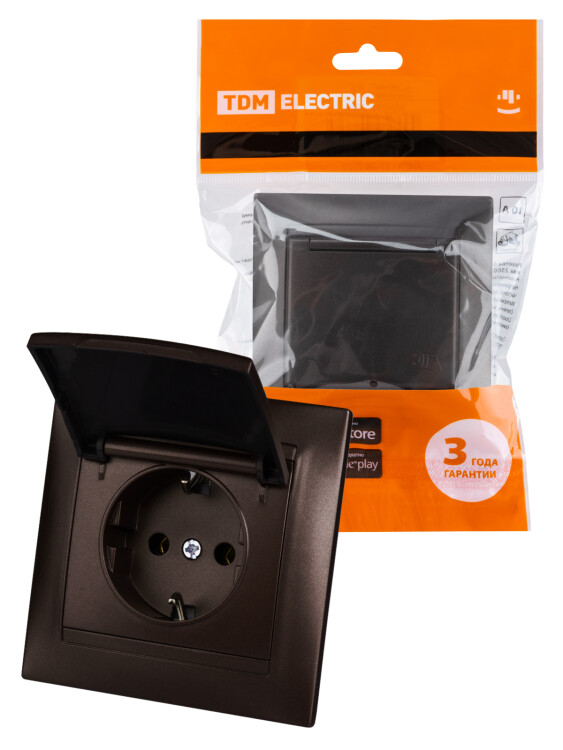 Розетка 2П+З 16А 250В IP44 с крышкой шоколад "Лама" TDM (кр.10шт)