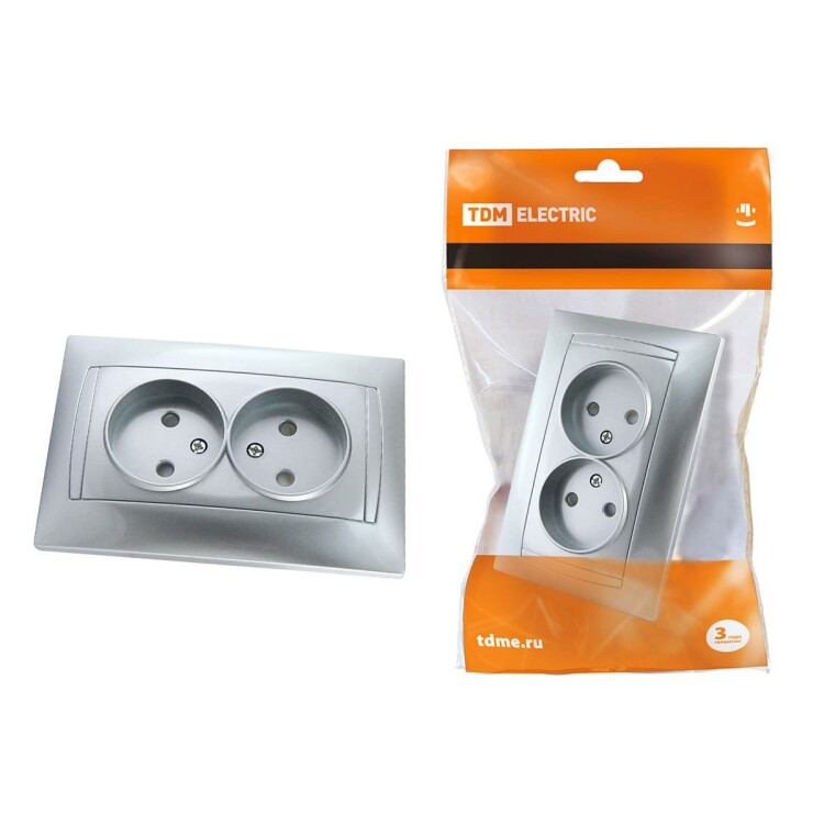 Розетка двойная 2П 10А 250В серебр. металлик "Лама" TDM (кр.7шт)