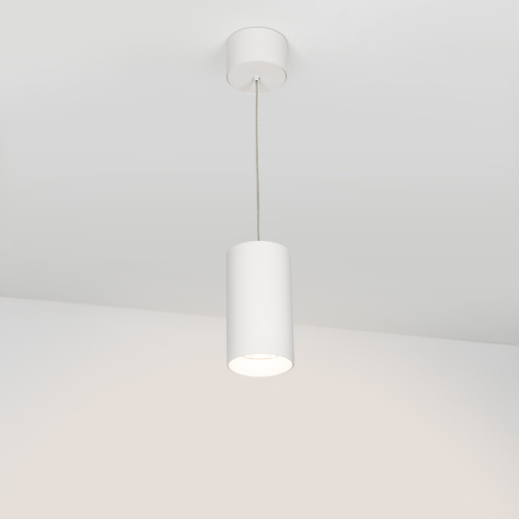 Подвесной светильник 15Вт, белый круглый корпус, белая вставка, металл. Цвет ТЕПЛЫЙ БЕЛЫЙ 3000K, св.поток 1100лм, CRI(Ra)>80, угол 40°. Размер Ø85x155мм. Встроенный драйвер PRI:220-240VAC, SEC:DC 500mA 23-36V 15Вт.
