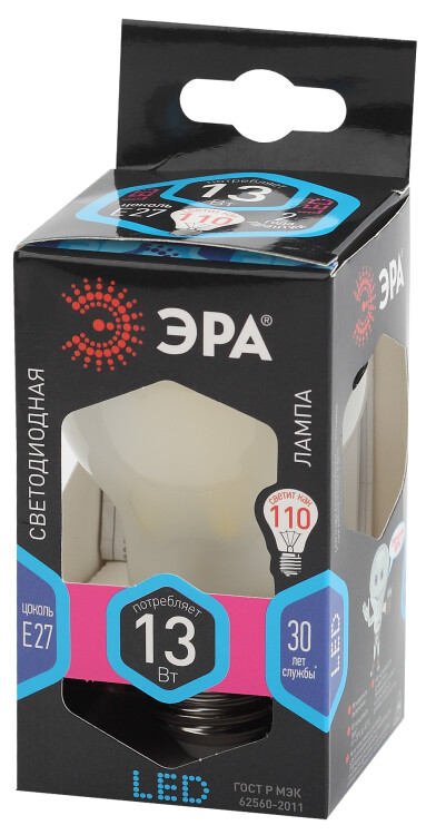 Лампочка светодиодная ЭРА F-LED A60-13W-840-E27 frost Е27 / Е27 13Вт филамент груша матовая нейтральный белый свет (кр. 1шт)