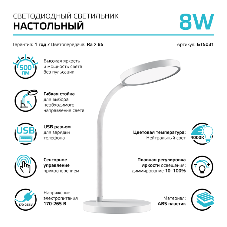 Настольный светильник Gauss Qplus модель GTL503 яркий представитель современного стиля и присущего светильникам от Gauss широкого функционала.