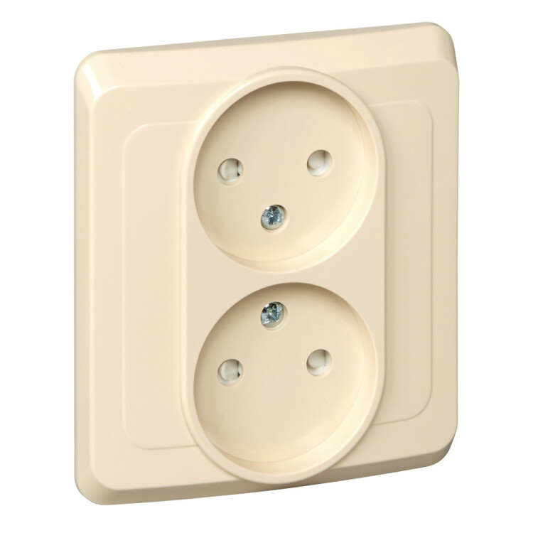 ЭТЮД С/У двойная РОЗЕТКА без заземления со шторками 16А 250B, КРЕМОВЫЙ,Россия