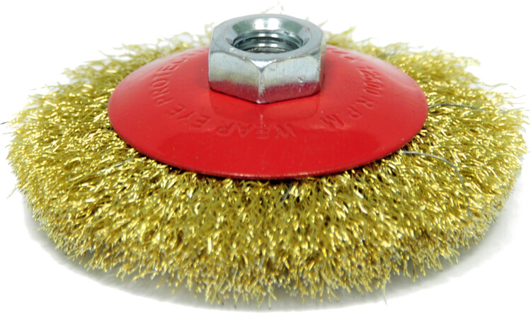 Корщетка-колесо 100 мм, М14, "тарелка", латунированная витая проволока 0,3 мм Elitech 1820.075100