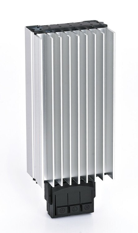 Резистивный нагреватель Dekraft. Мощность нагрева - 150 Вт. Напряжение питающей сети - 110 - 250 В АС. Монтаж на DIN-рейку, предназначен для поддержания оптимальной температуры воздуха внутри электротехнических шкафов. Он создает конвекционный поток воздуха, который предотвращает образование зон с низкой температурой. Также он защищает электрические компоненты от образования конденсата и замерзания при перепадах температуры, а также от коррозии металлических элементов активного оборудования.