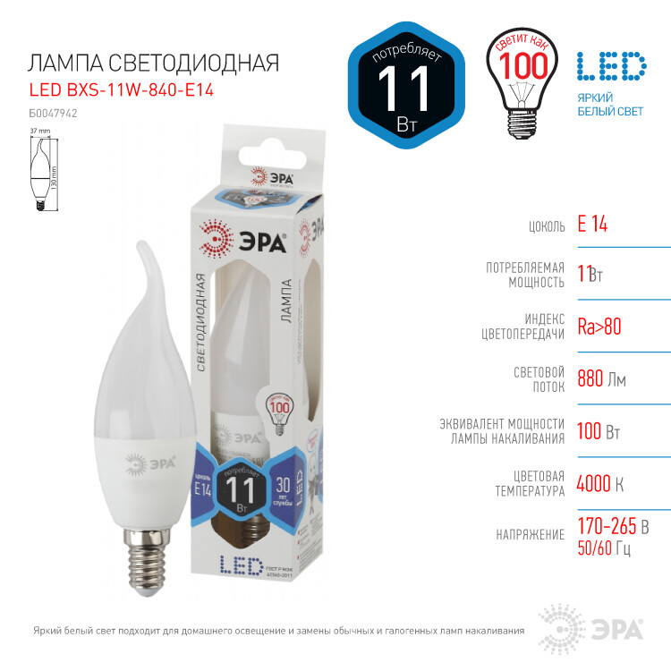 Эта светодиодная лампа ЭРА Серии Стандарт - современный, качественный и доступный источник света. Позволяет экономить до 90% электроэнергии по сравнению с лампой накаливания с аналогичным световым потоком. Светит ярким белым светом, который максимально приближен к естественному дневному. Идеальна для ежедневного применения в быту. Мгновенное включение. Ровное освещение. Можно использовать как с люстрами, так и со светильниками, в том числе настольными и бра.