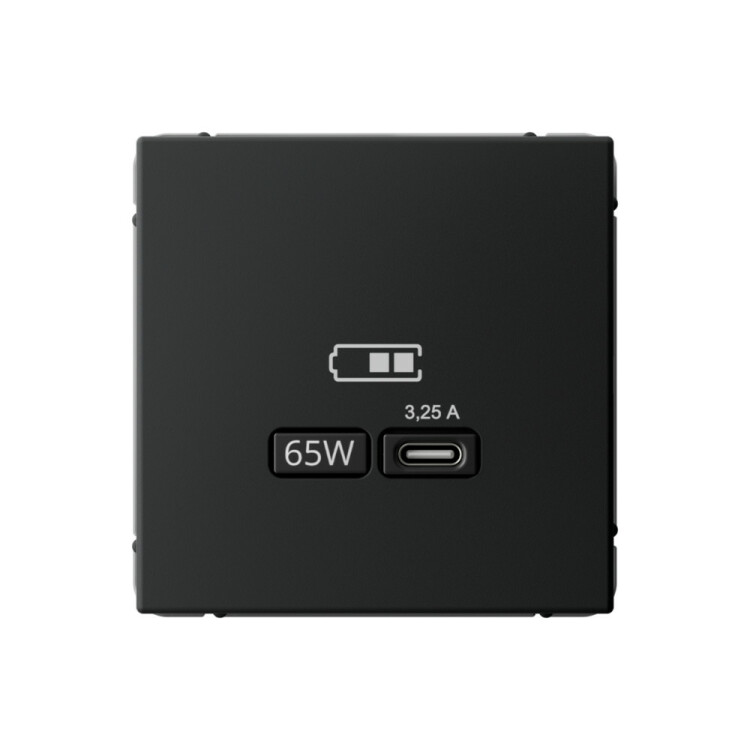 Розетка Systeme Electric серии ArtGallery в цвете карбон USB с разъемом типа C высокоскоростная.