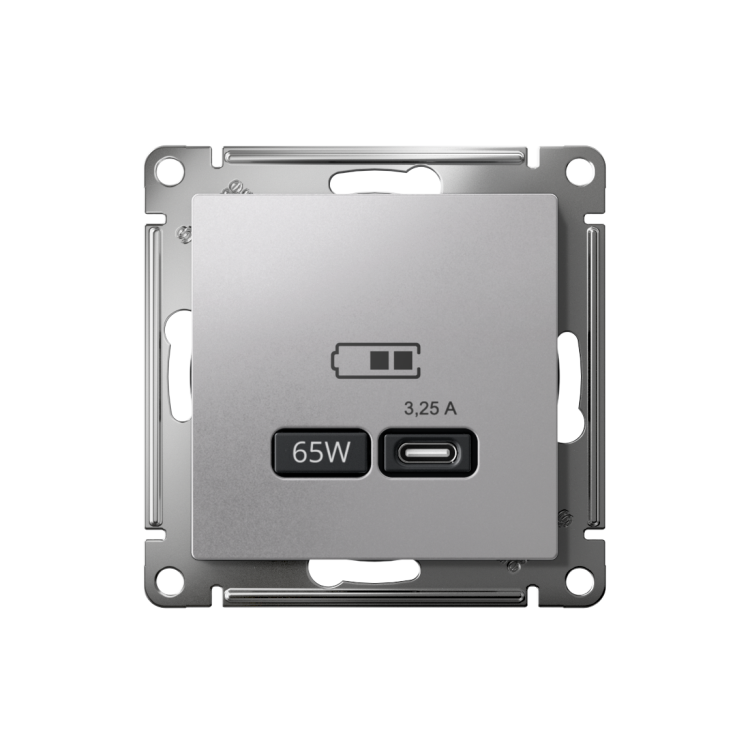 Розетка Systeme Electric (ранее Schneider Electric) серии AtlasDesign в цвете алюминий USB с разъемом типа C высокоскоростная. Самая современная USB-зарядка позволяет заряжать ноутбук, а также смартфоны последнего поколения, которые поддерживают функцию быстрой зарядки. Мощность: тип-С - 65Вт. Поддерживает современные протоколы быстрой зарядки QC, PD, последних версий. Лицевые детали из качественного ABS-пластика, устойчивого к царапинам и УФ-излучению.