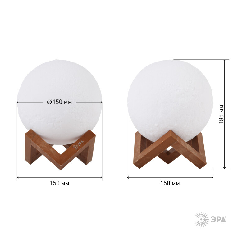 Ночник с необычным дизайном в виде реалистичной луны. Отличный подарок к любому празднику. В числе преимуществ - литиевый аккумулятор, сенсорное переключение и подзарядка от USB. "Луна" не настоящая, но очень похожа. Поверхность ночника повторяет реальный рельеф спутника Земли. Приятное свечение комфортной яркости. Есть два варианта "Луны" - поменьше и побольше: NLED-490-1W-W диаметр шара 8 см; NLED-491-1W-W диаметр шара 15 см. Модели различаются соответствующими шарику размерами сборной подставки, которая идет в комплекте. Подставка из пластика под цвет дерева. ЭРА "Луна" может светить теплым желтым или холодным белым светом переключается прикосновением. Просто возьмите ее в руки - и начнется ночная световая магия. Яркость плавно регулируется - касаемся зоны управления рядом с портом для зарядки и удерживаем, яркость изменяется. Есть возможность сделать свет очень мягким это важное преимущество, так как не все ночники можно притушить до еле видного свечения, не мешающего спать.