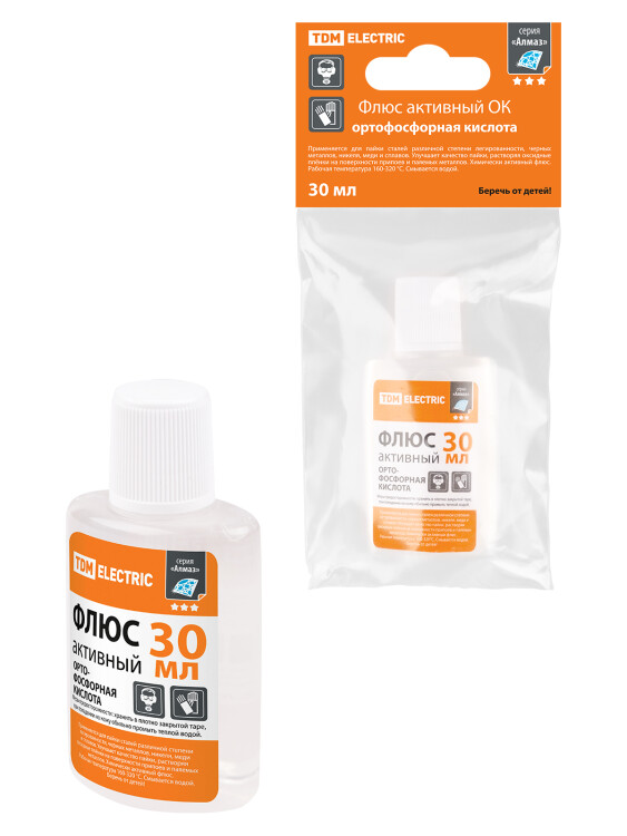 Флюс активный ОК, ортофосфорная кислота, 30 мл, дозатор, инд. упаковка, серия "Алмаз" TDM (кр.1шт)