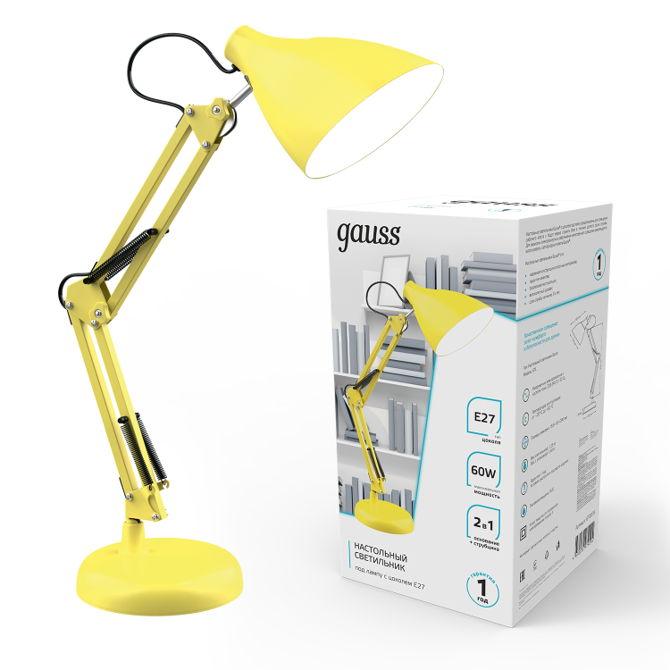 Металлический корпус светильника GTL003 от Gauss выполнен в желтом цвете. В интерьере он станетя ярким пятном, создает солнечное настроение. То, что выбран цоколь Е27 значительно расширяет выбор источника света, этот цоколь все еще самый распространенный. При выборе обратите внимание на светодиодные лампы от Gauss, они доступны по цене, имеют большой выбор мощности, идеально подходят к светильнику и весьма экономичны в эксплуатации. При использовании этих светодиодных ламп, расход электроэнергии будет под строгим контролем.