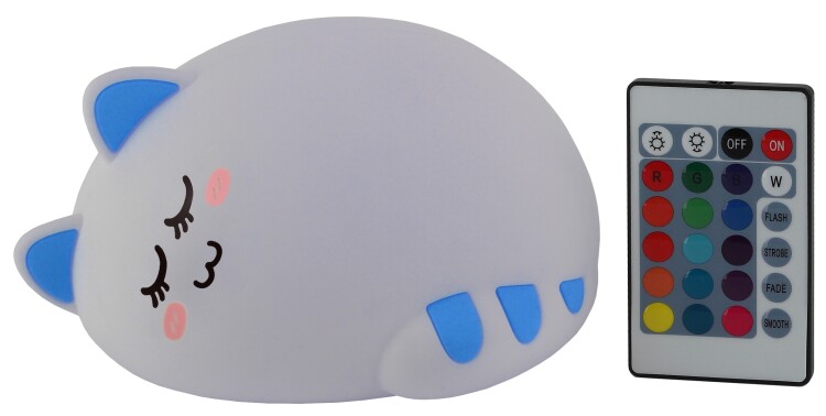 Мягкая игрушка-ночник ЭРА NLED-415-2W-BU в виде упитанного Котика, свернувшегося в комочек. Такой светодиодный светильник-ночник не только настроит ребенка на сон, но и поможет создать уют в доме. Освещение регулируется через касание или с помощью пульта, который идет в комплекте. У Котика несколько режимов: два белых с разной степенью яркости и смена RGB-цветов - эти основные режимы переключаются касанием. А с пульта дистанционного управления можно выбрать новые оттенки или скорости переключения цвета - дети обожают такую "цветомузыку". Ребенок может аккуратно гладить силиконовый корпус для переключения основных режимов: так игрушка поможет снять стресс после изнурительного дня. Аккумуляторную лампу-ночник легко брать с собой в другие комнаты - в спальню или детскую: достаточно подзарядить его с помощью USB-шнура. Выбрав нашего Котика, Вы получите приятный подарок не только для Вашего непоседы, но и для самого себя. Найдите место для верного друга у себя дома.