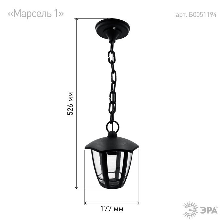 Садово-парковый светильник ЭРА НСУ 07-40-002 Марсель 1 черный 6 гранный подвесной IP44 Е27 max40Вт (кр. 1шт)