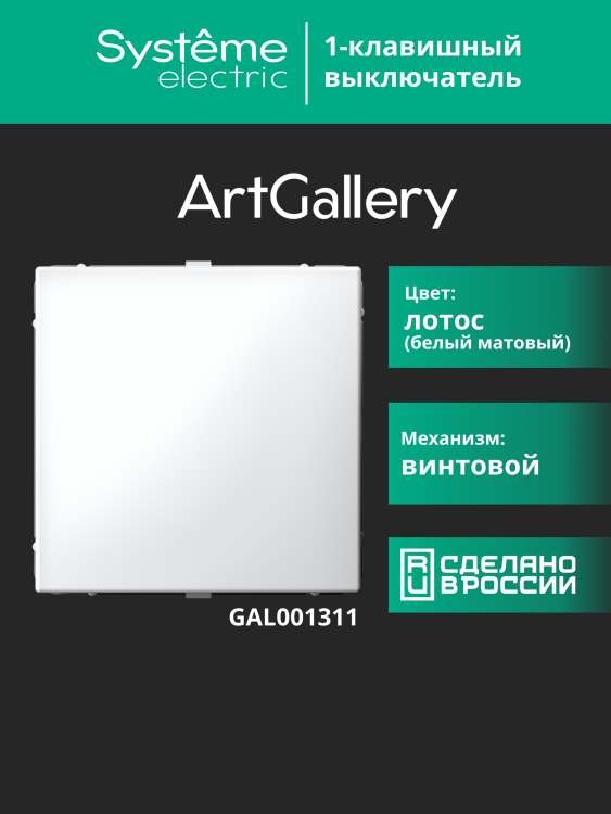 Механизм Systeme Electric серии ArtGallery в цвете лотос выключателя 1-клавишного подходит для сетей 250 В, на ток 10 А.