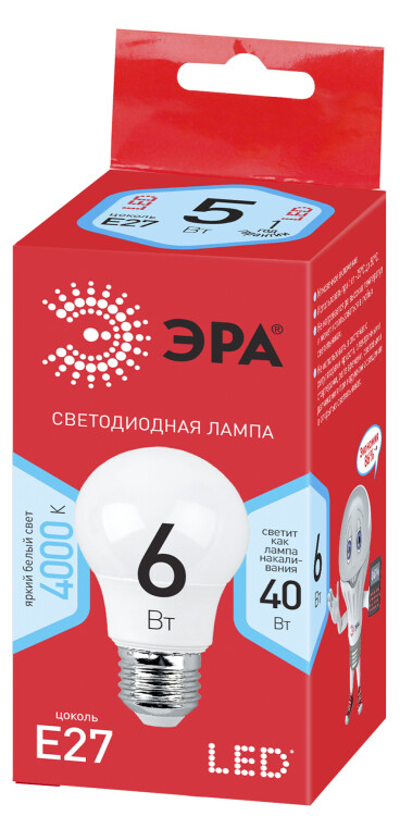 Эта светодиодная лампа ЭРА Серии Бюджет - современный, качественный и доступный источник света. Позволяет экономить до 90% электроэнергии по сравнению с лампой накаливания с аналогичным световым потоком. Светит ярким белым светом, который максимально приближен к естественному дневному. Идеальна для ежедневного применения в быту. Мгновенное включение. Ровное освещение. Можно испо льзовать как с люстрами, так и со светильниками, в том числе настольными и бра.
