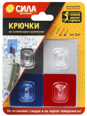 СИЛА Крючки на силикон. крепл. 5х5, ПРОЗРАЧН., до 1 кг, 4 шт. [SH5-S4TR-24] (24/288/2304) (кр. 1упак )