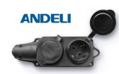 Розетка двухместная с заглушками каучук AM-K05 2Р+РЕ 16А 220В IP44 (ANDELI) (10шт)