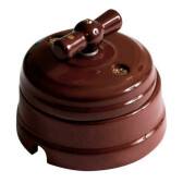 Выключатель фарфоровый перекрестный (в комплекте с подъемной рамкой D70x60), цвет - коричневый, ТМ "МезонинЪ" (кр. 1шт)