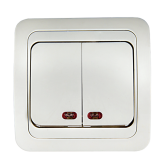 Выключатель двухклавишный с подсветкой CLASSICO белый 2123 IN HOME (кр. 10шт)