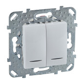 UNICA ПЕРЕКЛЮЧАТЕЛЬ 2-клавишный, 2 модуля, с подсветкой, 2 х сх. 6а, БЕЛЫЙ (кр.10шт) C3(+)