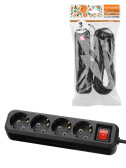 Удлинитель4гнезда,3метра,с/з, выкл., 10 А, 2300 Вт, черный, НАРОДНЫЙ (кр.1шт)