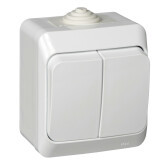 Выключатель 2-клавишный, для открытого монтажа, IP44, серия ocean, цвет альпийский белый (кр.1шт)