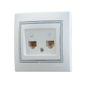 MIRA Розетка компьютер+TF, белая с серой вставкой