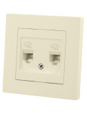 Розетка телефонная, двойная.С двумя отдельными линиями.Рамка,вставка,накладка кремовая,RJ12,6/2 (кр.1шт)
