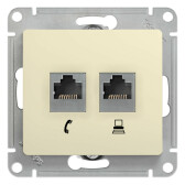 GLOSSA РОЗЕТКА двойная RJ11+RJ45, кат.5Е, механизм, БЕЖЕВЫЙ