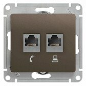 GLOSSA РОЗЕТКА двойная RJ11+RJ45, кат.5Е, ШОКОЛАД (2шт) C2