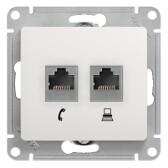GLOSSA РОЗЕТКА двойная RJ11+RJ45, кат.5Е, механизм, БЕЛЫЙ
