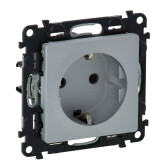 Axolute Розетка 2К+З с крышкой, 10/16 А 250 В с боковыми заземляющими контактами Schuko, с экранированными контактами, клеммы с автоматическим зажимом, цвет алюминий, немецкий стандарт (кр.1ШТ)