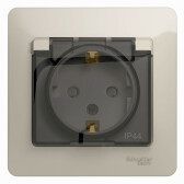 W59 AQUA РОЗЕТКА с заземлением со шторками, 16А, IP44, механизм, СЛОНОВАЯ КОСТЬ