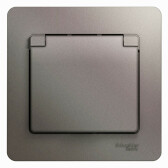 GLOSSA РОЗЕТКА с зазем. со шторками с крышкой,IP20,16А, 250В, в сборе,ГРАФИТ