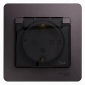 GLOSSA РОЗЕТКА с зазем. со шторками с крышкой,IP44,16А, 250В, в сборе,ГРАФИТ