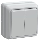4-104-01 Intro Выключатель двойной, 10А-250В, СУ, Solo, белый (10/200/2400) (кр. 1шт)