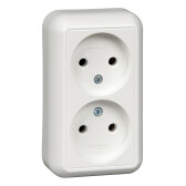 Розетка двойная 2П открытой установки IP20 10А 250В (керамика) белая "Ладога" TDM (кр.10шт)