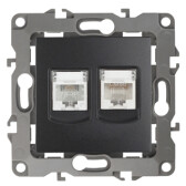 W59 РОЗЕТКА двойная RJ11+RJ45, 160В, 1А, кат.5Е, механизм, ЧЕРНЫЙ БАРХАТ