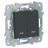 UNICA NEW выключатель 2-клавишный, 2 модуля, с подсветкой, 2 х сх. 1а, антрацит (кр.10шт) C2