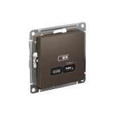 GLOSSA USB РОЗЕТКА тип-C 65Вт высокоскор.заряд. QC, PD, механизм, ШОКОЛАД