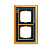Рамка 2-постовая, серия Династия, Латунь полированная, черное стекло (кр. 1шт)