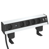 Настольный бокс DB укомплектованный (3 розетки 220В Schuko 2К+З черного цвета, 2 розетки RJ45 категория 6 экранированные (муфты, соединение 1:1), с сетевым кабелем 3 м, кабельный вывод с нижней стороны) без крепления, 235х73х70 мм, алюминий, серебристыйDB