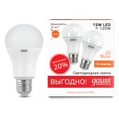 Лампа Gauss LED Elementary A60 15W E27 2700K 1/50 (2 лампы в упаковке) (кр.1упак)