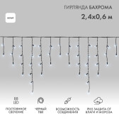 Гирлянда светодиодная Бахрома (Айсикл) 2,4х0,6м 88 LED БЕЛЫЙ черный ПВХ IP65 постоянное свечение 230В нужен блок 303-500 NEON-NIGHT (кр. 1 шт)