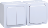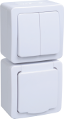 Выключатель двухклавишный + розетка влагозащищенная для открытой установки REXANT IP54, выключатель 10 А, розетка с/з 16 А, В-РЦ-659(03) (кр. 1 шт)