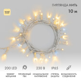 Гирлянда светодиодная Нить 10м 200 LED ТЕПЛЫЙ БЕЛЫЙ прозрачный ПВХ IP65 постоянное свечение 230В соединяется нужен блок 303-500-1 NEON-NIGHT (кр. 1 шт)