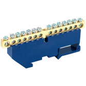 Шина «N» нулевая с синим изолятором на DIN-рейку 6x9мм стойка бол. 14 групп REXANT (кр. 1 шт)