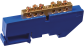 Шина "0" N (6х9мм) 8 отверстий латунь синий изолятор на DIN-рейку розничный стикер EKF PROxima (кр. 1шт)