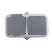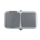 Выключатель двухклавишный + розетка влагозащищенная для открытой установки REXANT IP54, выключатель 10 А, розетка с/з 16 А, В-РЦ-659(03) (кр. 1 шт)