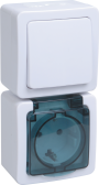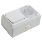 Выключатель одноклавишный + розетка влагозащищенная для открытой установки REXANT IP54, выключатель 10 А, розетка б/з 16 А, В-РЦ-653(03) (кр.1шт)